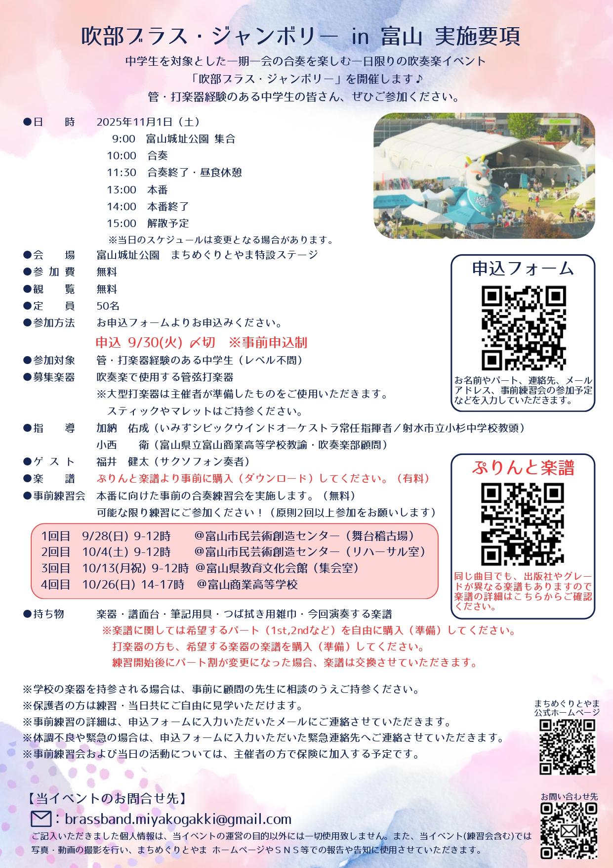 催事名称:吹部ブラスジャンボリーin富山